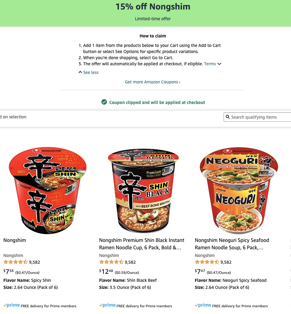 吃货福利!Nongshim 辛拉面精选各类泡面额外85折