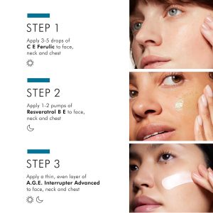 价值$441, 这款抗衰老护肤套装包含:CE Ferulic 维C抗氧精华15ml,提供日间抗氧防护,减少紫外线、臭氧、柴油废气等自由基损伤高达 41%,提亮肤色,淡化细纹,增强肌肤紧致度。A.G.E. 智慧抗糖霜48g,改善细纹与深层皱纹,帮助肌肤恢复弹性平滑。Resveratrol B E 夜间抗氧精华30ml ,强化肌肤夜间修护,提升光泽与紧致度,翌日焕发健康神采。日夜协同修护,有效对抗自由基、胶原流失及肌肤糖化,为肌肤提供全面抗老解决方案,让肌肤更年轻、更紧致、更透亮!