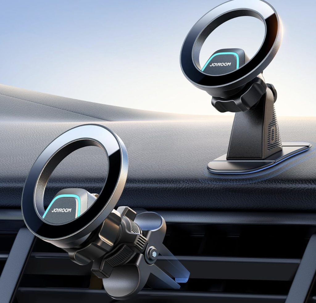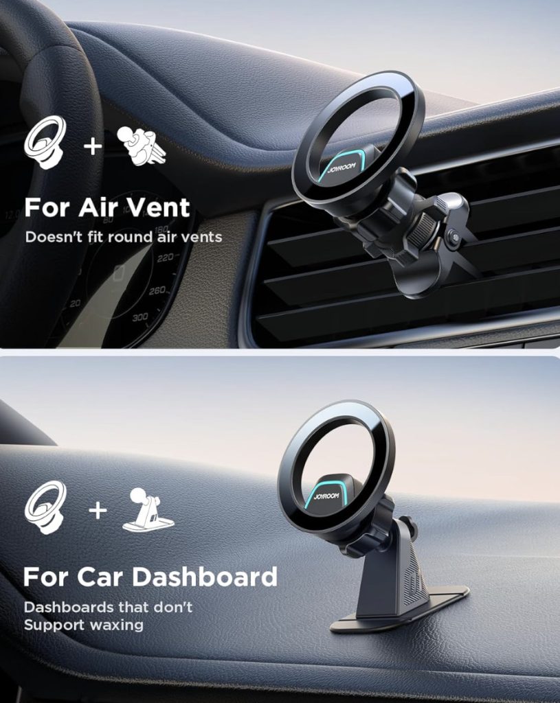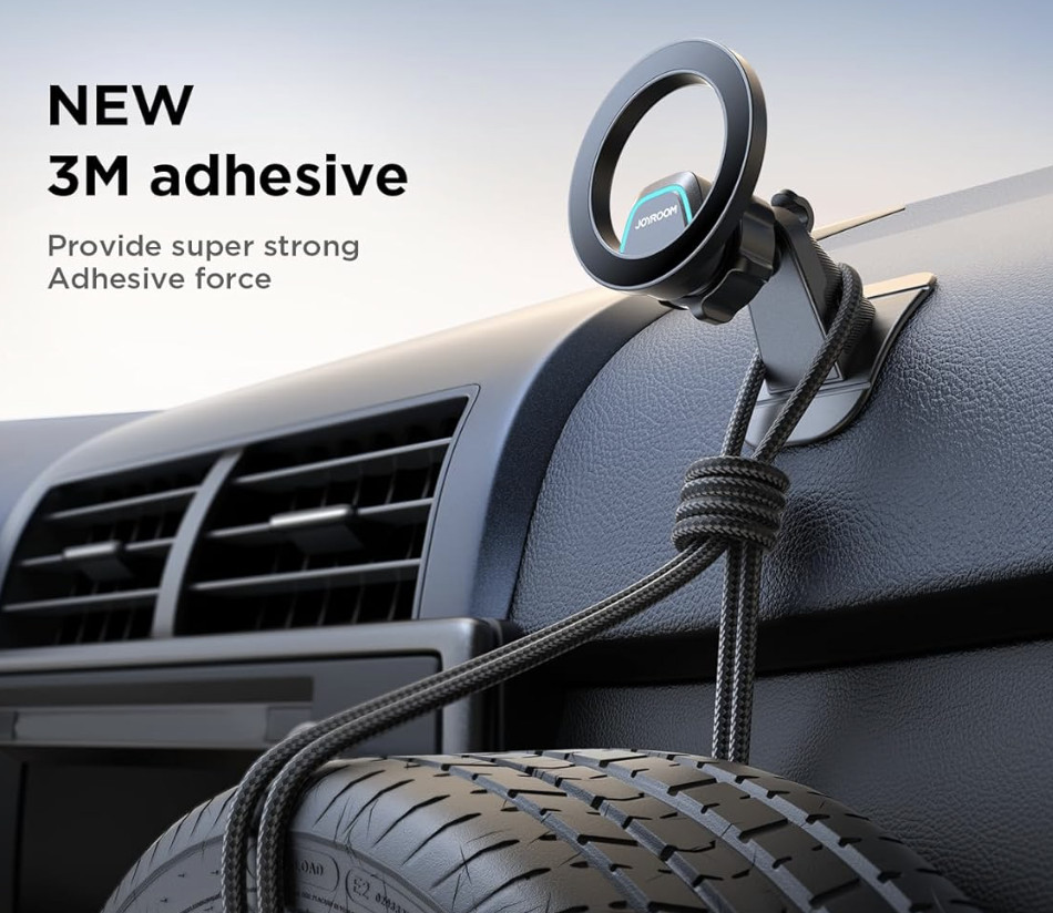 原价$9.99! JOYROOM 的 magsafe 车载支架由 20 个 N55 超强磁铁组成, 可确保牢牢抓住您的手机,即使猛踩刹车、急转弯或在崎岖道路上行驶,也不用担心会掉下来, 附带两个金属磁环(高级加宽圈和常规型号金属圈),只需将其粘在其他盒子背面即可工作, 支架采用独特的 3M 粘合剂,支持曲面, 即使在 -40°F 至 194°F 的极端环境下,这款 iPhone 磁性车载手机支架也能紧紧粘在您的汽车仪表板上!背面有充电线插槽,可将充电线固定到位, 内置球头连接, 360度旋转和90°水平调整,实现真正的单手操作