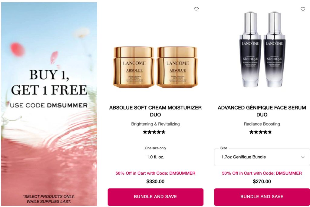 剁手推荐美妆 Lancome精选护肤买一送一❗️快收小黑瓶/粉水/菁纯面霜 最后一天抓紧机会❗️ By 小ii - June 18, 2025 1:14 pm PDT 大名鼎鼎小黑瓶,大眼精华,粉水,香水,菁纯系列系列, 眼唇卸妆等等都有活动!快来逛逛淘心头好! 满$100包邮 或运费$8 折扣码: DMSUMMER 点击购买 更多Lancome买一送一必抢单品: 点击购买 “文案原创,版权©️剁手,转帖请标明出处,抄袭必究” 剁手Facebook:https://duosho.us/lrp8 广告