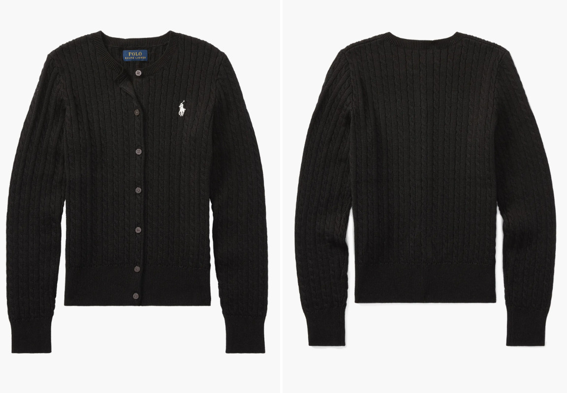这款开衫是纯正的 Polo 衫,采用有光泽的丝光棉绞花针织而成,以标志性风格保暖。 儿童和大童款都有,成人女士可以入手最大码~