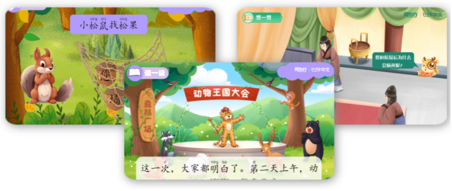 课程插画丰富孩子阅读体验,助力理解课文,增添学习中文的趣味性。课堂上借助游戏和交互练习,培养孩子们的观察力、思考力与逻辑思维。