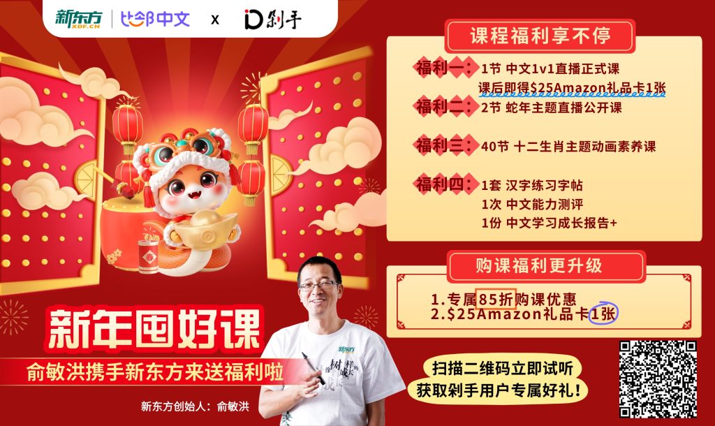 全新课程上线的同时,又恰逢蛇年来临之际,新东方比邻中文怀揣着满满的热情与诚意,精心筹备了【四重福利】,只为回馈每一位热爱中文的海外宝贝!
