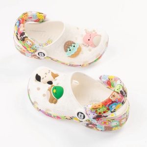 原价$69.99/每双!全新Squishmallows经典洞洞鞋,采用可爱的Caedia小牛设计,鞋面为柔软毛绒材质,鞋底带有图案印花。鞋身轻盈舒适,透气排水,且易清洁快干,适合日常穿着。可旋转的后跟带可插入Jibbitz™饰品,提供个性化装饰和稳固贴合感。轻便的材质制成,为您提供舒适的穿着体验。鞋履上有通风孔,有助于保持脚部干爽和透气。
