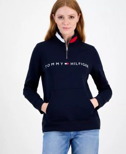 清仓3.2折!新年穿红色【折后$22.24】Tommy Hilfiger 女士半拉链刺绣卫衣 多色选