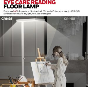 原价$299.99! 采用240颗全光谱Sunturalux LED,模拟自然日光,减少眩光与蓝光,色彩逼真(CRI>98),亮度高达6000流明,缓解眼疲劳。双向光束设计,均匀照亮约10.5㎡,适合书房、办公室、客厅及儿童学习区。4000K自然光,亮度可无级调节(10%-100%),高度77.4英寸,带人体工学旋钮调控。