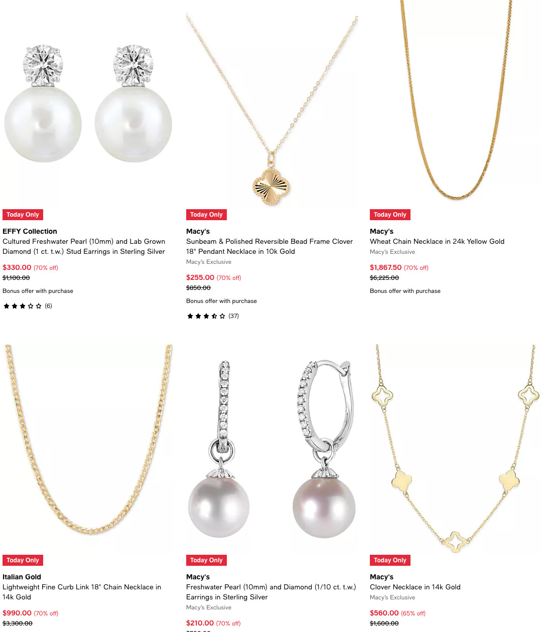 琳琅满目光彩夺目!Macy’s 今日首饰闪促 低至3折起!!