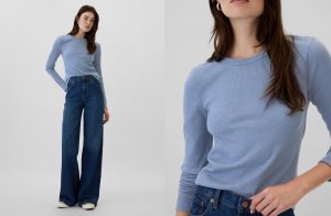 百搭打底!【折后$5.2 包邮】GAP女士华夫格针织圆领t恤 多色选