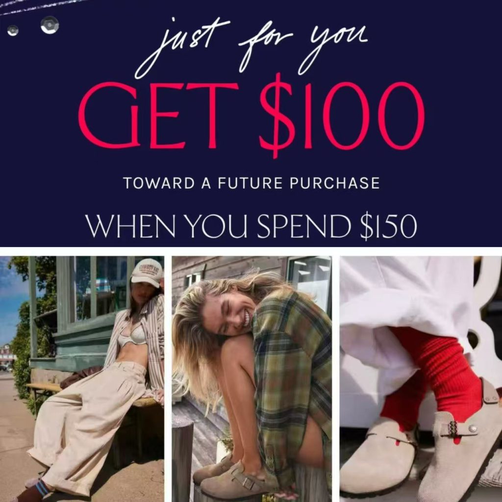 Free People年度最强优惠震撼上线!之前每次只给$50礼卡的,这次直接给$100啦!等于半价福利直接到手!Birkenstock、Salomon、Hoka、On等热门品牌全部参与,无论是日常通勤、轻户外还是跑步训练,都能轻松升级装备。机会难得,快约上闺蜜、朋友一起剁手!错过就要等一年哦!