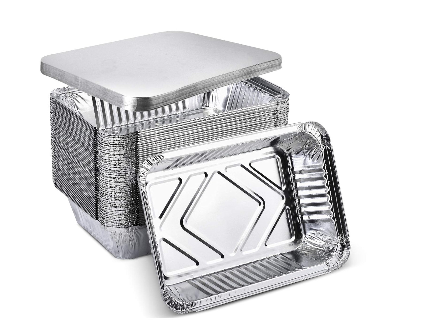 聚餐party必备!【折后$17.15 Prime包邮】2lb容量一次性带盖子铝箔锡纸盘 50个!