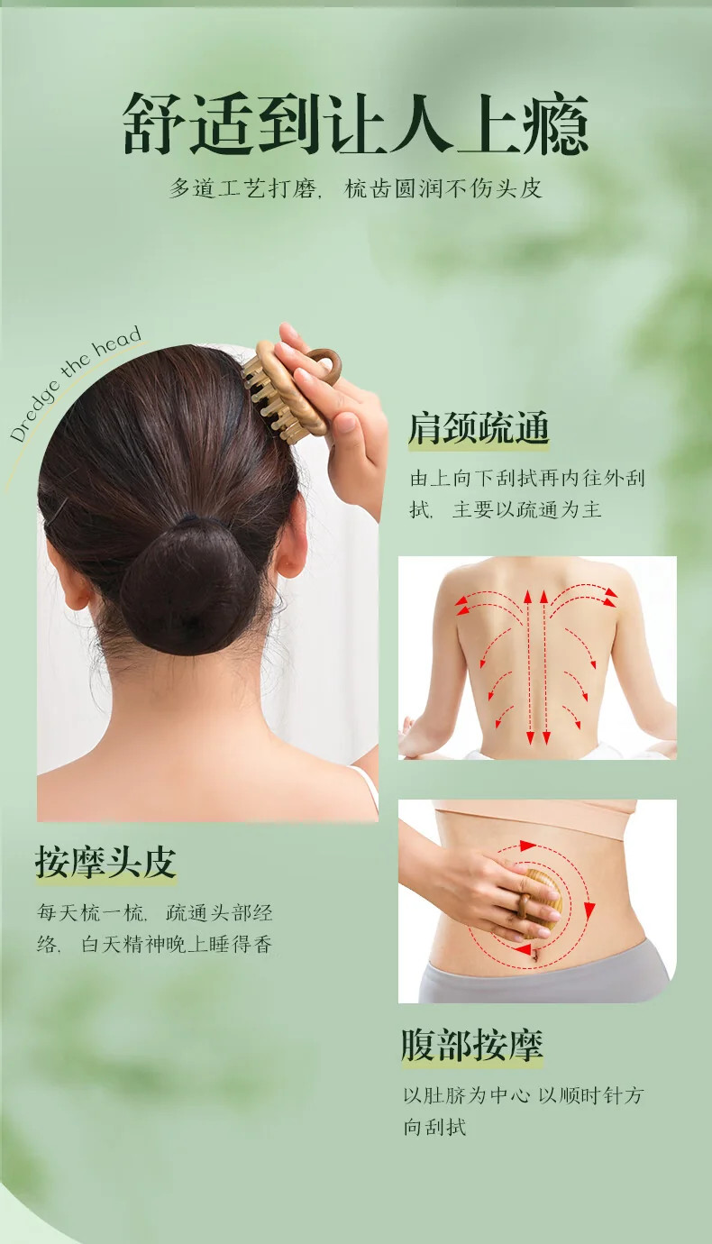 舒服到让人上瘾!【折后$21.9 包邮】采药师 绿檀木插齿指环梳子经络刷19钉