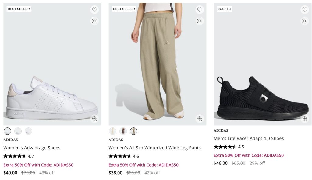 剁手推荐时尚运动 这也太便宜了吧❗️Adidas Outlet 精选服饰低至3折+额外半价!无门槛包邮 By Lena - November 20, 2025 9:48 am PST 折扣码:ADIDAS50 又来了一大堆好折美衣!这也太便宜了吧!!众多史低捡漏~好看又好穿的运动休闲系,经典款,爆款均有参加! 点击购买 “文案原创,版权©️剁手,转帖请标明出处,抄袭必究” 剁手Facebook:https://duosho.us/lrp8 广告