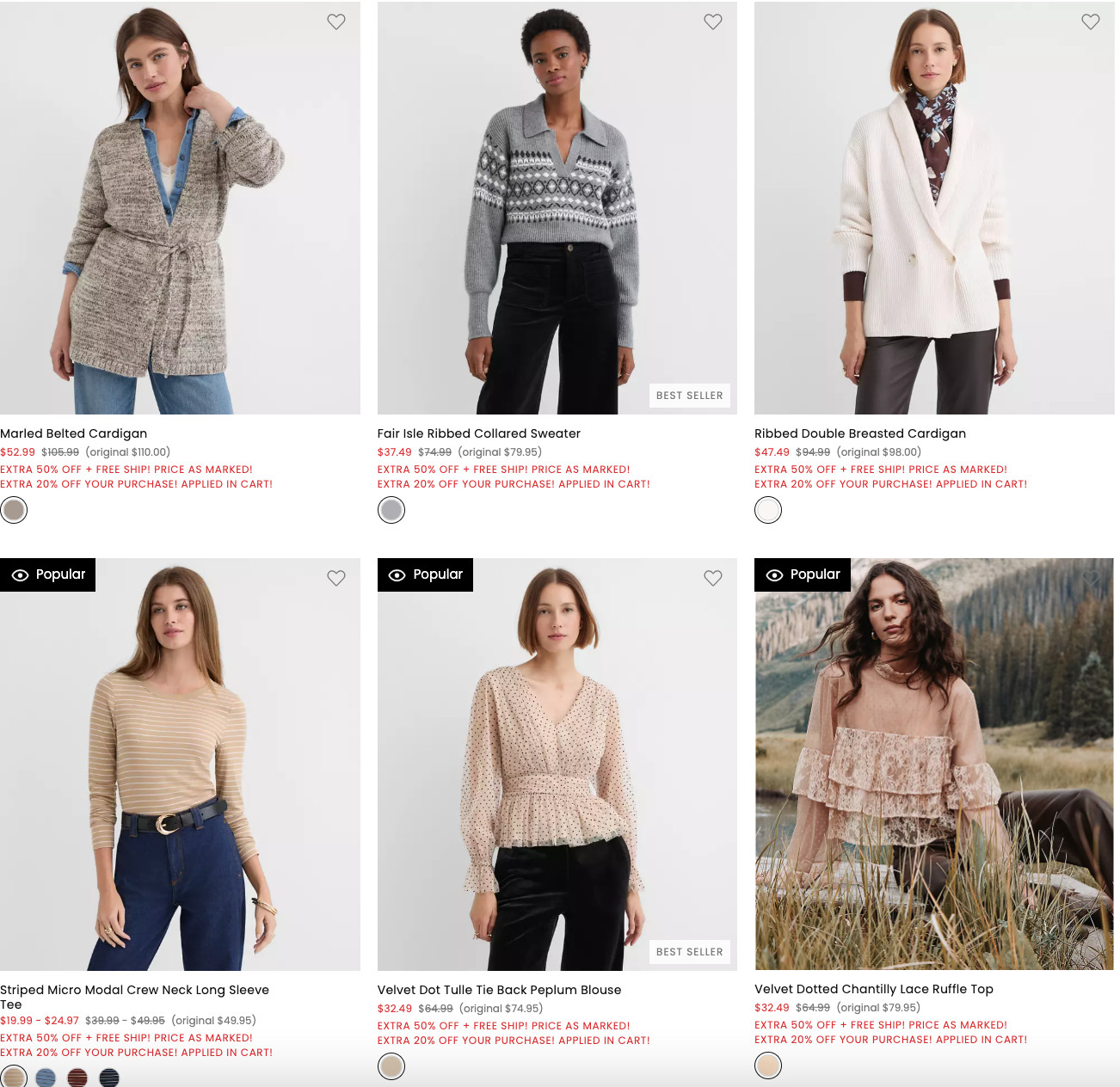 这波折扣太难得了+免邮!LOFT 众时尚美衣 低至4折+额外5折+再额外8折!!