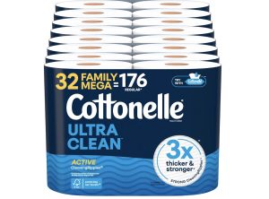 原价$69.58! 包含 32 卷家庭超大卷 Cottonelle 超洁净单层卫生纸,每卷 353 张(共 1190.40 平方英尺);包装可能有所不同, 可去除残留物、减少异味,专为敏感肌肤设计,, 采用强韧CleaningRipples 设计,让您倍感洁净, 使用寿命是领先品牌普通卷纸的 6 倍以上,让您和家人都能随时拥有充足的用量,送的礼卡30内自动发送到gift balance, 用于Amazon自营产品