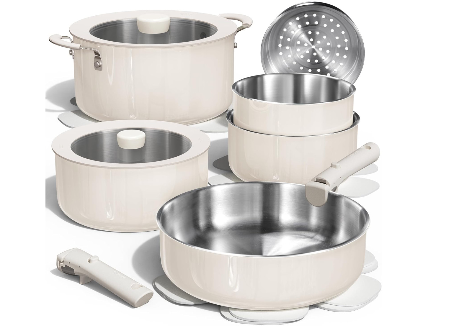 闪购!【折后$59.99 包邮】Carote 14件套不锈钢平底锅等套装