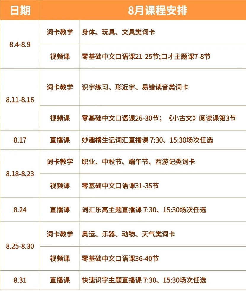 · 快速识字主题直播课 8月31日