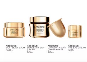 原价$550, 价值$890! 限量版护肤套装,包含兰蔻 Absolue 面部、眼部和身体四款产品, Soft Cream 是一款保湿霜,可紧致肌肤, 能够改善肌肤纹理不均、肤色不均、暗沉和干燥等问题, Eye Cream 是一款质地柔滑的眼霜,蕴含 Absolue 的 T12 Biotech Pearl 成分,有助于淡化皱纹,该成分经 AI 甄选,具有平滑肌肤的功效, Body Balm 是一款深层滋养的身体乳,有助于减少粗糙感,均匀肤色,紧致肌肤, 随单送五件套+礼包!
