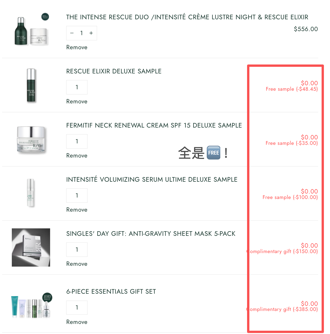 所有赠品需要在购物车手动选择添加