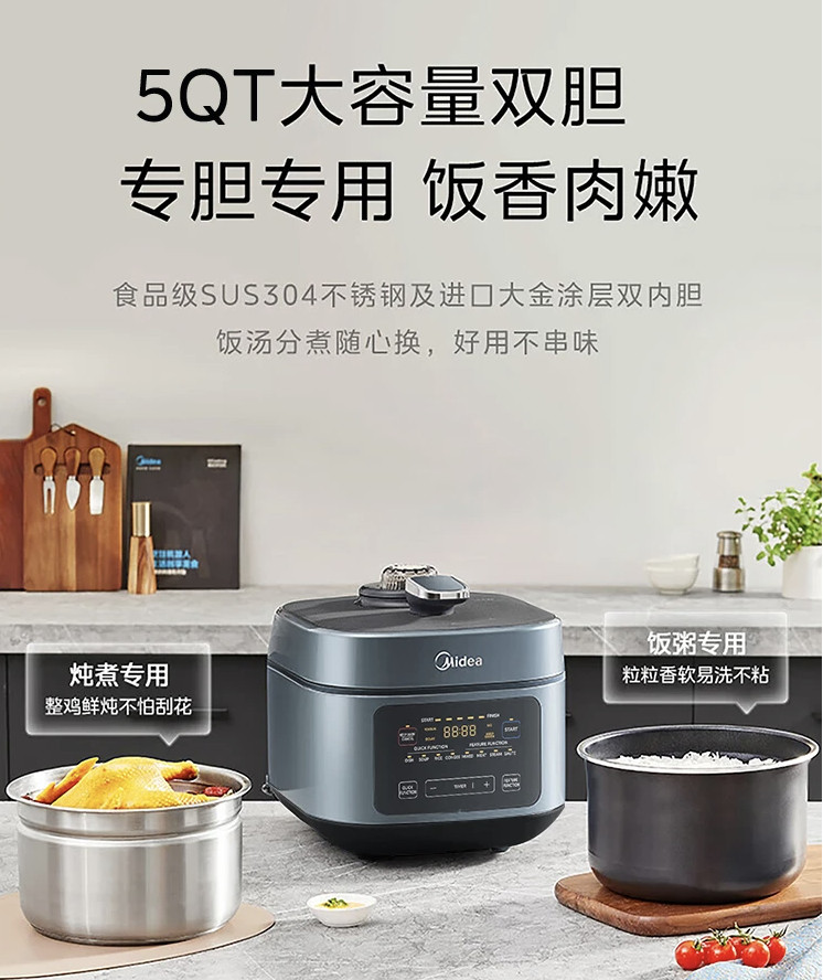 原价$268! 8大智能菜单,菜/汤/米饭/粥//肉/蒸/炒/混合功能,一键轻触变大厨, 70kPa压力,配合1300W大火力,快速软化肉质纤维,鲜嫩不柴, 双NTC精准控温控压,煮汤不溢锅,煮饭防糊底, 0涂层不锈钢+黑金厚釜双内胆,专胆专用,饭汤分煮不串味, 灵敏触控屏+压力可视化设计,实时掌握锅中压力进度, 14重安全保护,可自动排气,也可手动排气,泄压方式任你选, 5L大容量,24小时预约,安心烹饪免看管,美味如约而至!