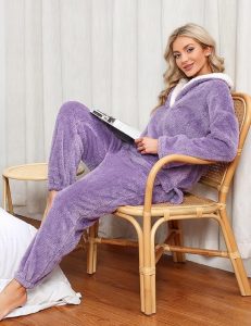 HEEKPEK Womens Pajamas Warm Fleece Pajamas Set Pullover Pants Loose Loungewear Sherpa Hoodie Sleepwear Winter Clothes