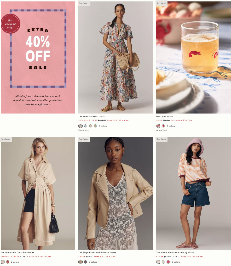 剁手推荐时尚 Anthropologie 限时挖宝啦❗️ 美衣、家居品低至2折 + 会员额外6折!家居品宝藏店铺! By Carina - September 14, 2025 5:22 pm PDT 无需折扣码加入购物车立减,它家的衣服又美又仙, 波西米亚民族风,家居休闲风等多种风格~ 不打折的时候的确有点小贵! 折后性价比超高!! 2000+款等你来淘宝~加入购物车立享折扣! 满$50免运费 总入口:点击购买 家居好物:点击购买 “文案原创,版权©️剁手,转帖请标明出处,抄袭必究” 剁手Facebook:https://duosho.us/lrp8 广告