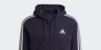 【折后16 包邮】Adidas Essentials男士经典三道杠连帽卫衣