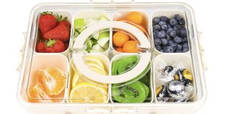 【折后$8.99 Prime包邮】可拆卸双层 8格零食收纳盒+叉子+清洁海绵套装