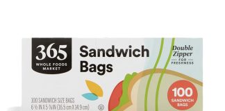 【折后$3.69 Prime包邮】365 by Whole Foods 三明治小吃袋 100个!