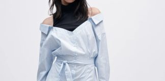 时尚好看!【折后$73.75 包邮】Maje 条纹拼接衬衫裙!