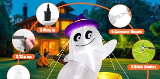 万圣节庭院吸睛装饰!【折后$19.99 Prime包邮】5英尺可爱飞天幽灵充气摆件