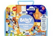 原价$29.99!从气球游戏Keepy Uppy、记忆卡到表演游戏,这个套装包含了一切您需要的有趣游戏和幼儿活动!制作有趣的泡沫面具和3个可爱的指偶——Bluey、Bingo和Muffin,使用手电筒将指偶的影子投射在墙上或儿童帐篷中,创造出Bluey形象