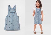 原价$39.99! 采用5%回收棉制作,搭配Gap Washwell环保水洗工艺,节水环保更安心。轻柔不弹牛仔布,淡色牛仔洗水效果清新自然。可调节交叉背带,搭配方领荷叶边与全身精美刺绣,甜美可爱又充满童趣。直筒舒适版型,适合日常穿搭,陪伴宝宝自在成长。