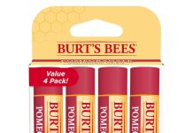 【折后$5.99 Prime包邮】Burt’s Bees 天然蜂蜡石榴润唇膏 4支装