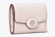 史低!【折后$71.1 包邮】Tory Burch 小号 Robinson 亮面皮革钱包 粉色