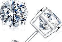 原价$49.99! 这款精美的莫桑石耳钉配有 2 颗圆形莫桑石;四种颜色可供选择,完美搭配任何服装,螺旋耳环的安全设计,您不必担心在您最喜爱的活动中丢失耳环, 2 颗 0.1 克拉 3 毫米实验室制造的 D 颜色 VVS1 净度闪光莫桑石,由 925 纯银 4 爪篮固定,手工镶嵌确保莫桑石永不脱落