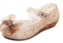 采用 PVC 果冻材质,玛丽珍鞋型设计,柔软舒适,适合公主装扮及日常穿着。防滑耐磨塑胶鞋底,轻盈透气,防水易清洁,搭配便捷扣带,方便穿脱。1.4 英寸舒适鞋跟,提供适当高度,不磨脚不伤踝。适合各种场合,如生日派对、演出、郊游等。建议参考尺码表,预留 0.5-1 英寸空间,确保合脚舒适。