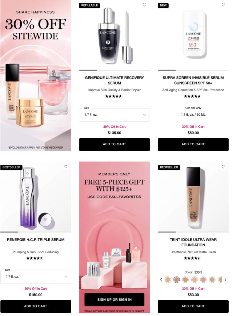 剁手推荐美妆 Lancome 限时特惠抢购促销! 全场美妆护肤享额外7折!满额再送豪礼赠品 By 小ii - September 11, 2025 7:10 pm PDT 菁纯面霜、精华、小紫瓶系列,发光眼霜、眼唇卸等统统参加!超值!性价比高的套装也参与折扣不要错过 满$100包邮 满$125送5件套赠品 赠品折扣码: FALLFAVORITES 使用折扣码需登录会员(免费注册) 点击购买 套装区: 点击购买 “文案原创,版权©️剁手,转帖请标明出处,抄袭必究” 剁手Facebook:https://duosho.us/lrp8 广告