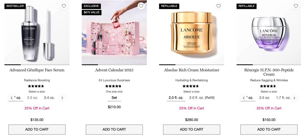 双十一大促❗️Lancome官网精选美妆护肤一律75折!