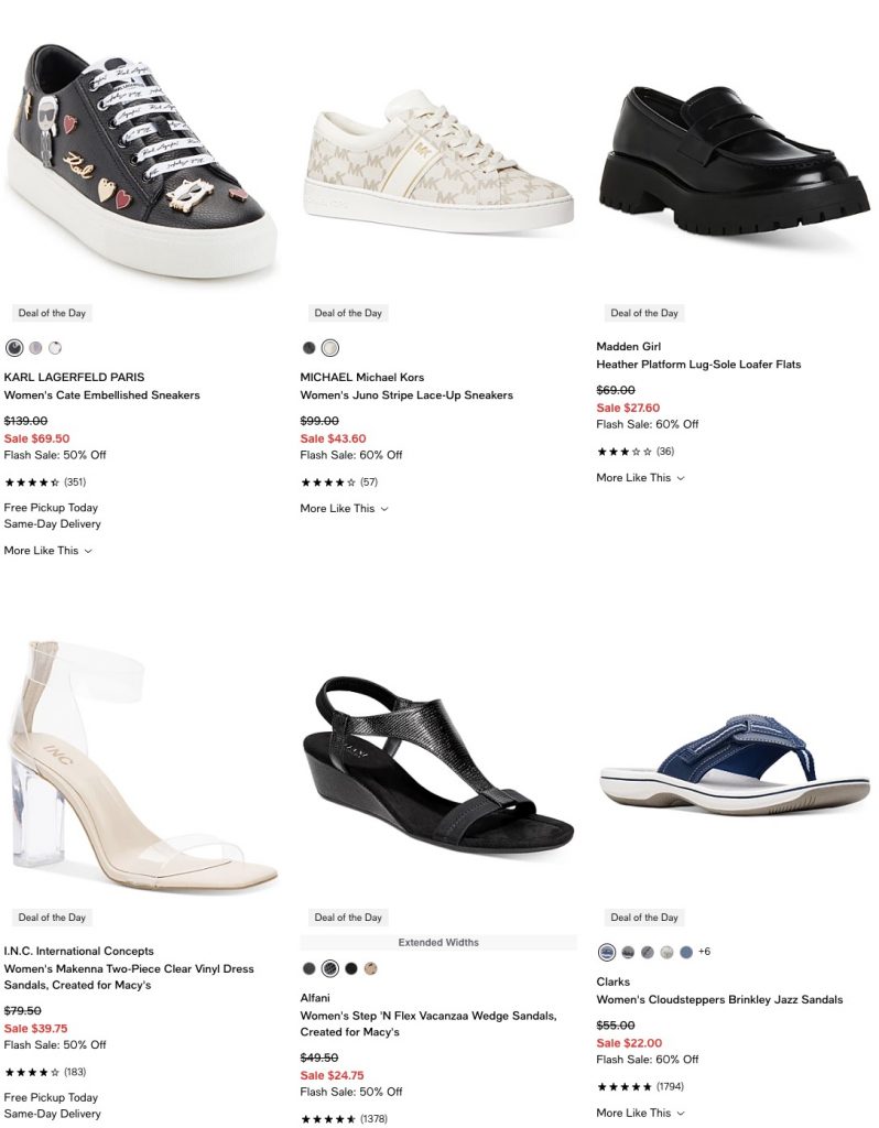 剁手推荐时尚 MACY’S 限时闪购, 精选鞋履一律额外50-70% Off !! By 小ii - August 14, 2024 10:21 am PDT 包括了超多时尚, 休闲, 和运动品牌! MK, COACH 等鞋履快来挑选看看! 分分钟捡到宝! 免费注册或登录Star Reward会员满$25包邮: 点击注册 或任意单免费就近店面取货 女鞋: 点击购买 男鞋: 点击购买 童鞋: 点击购买 “文案原创,版权©️剁手,转帖请标明出处,抄袭必究” 剁手Facebook:https://duosho.us/lrp8 广告