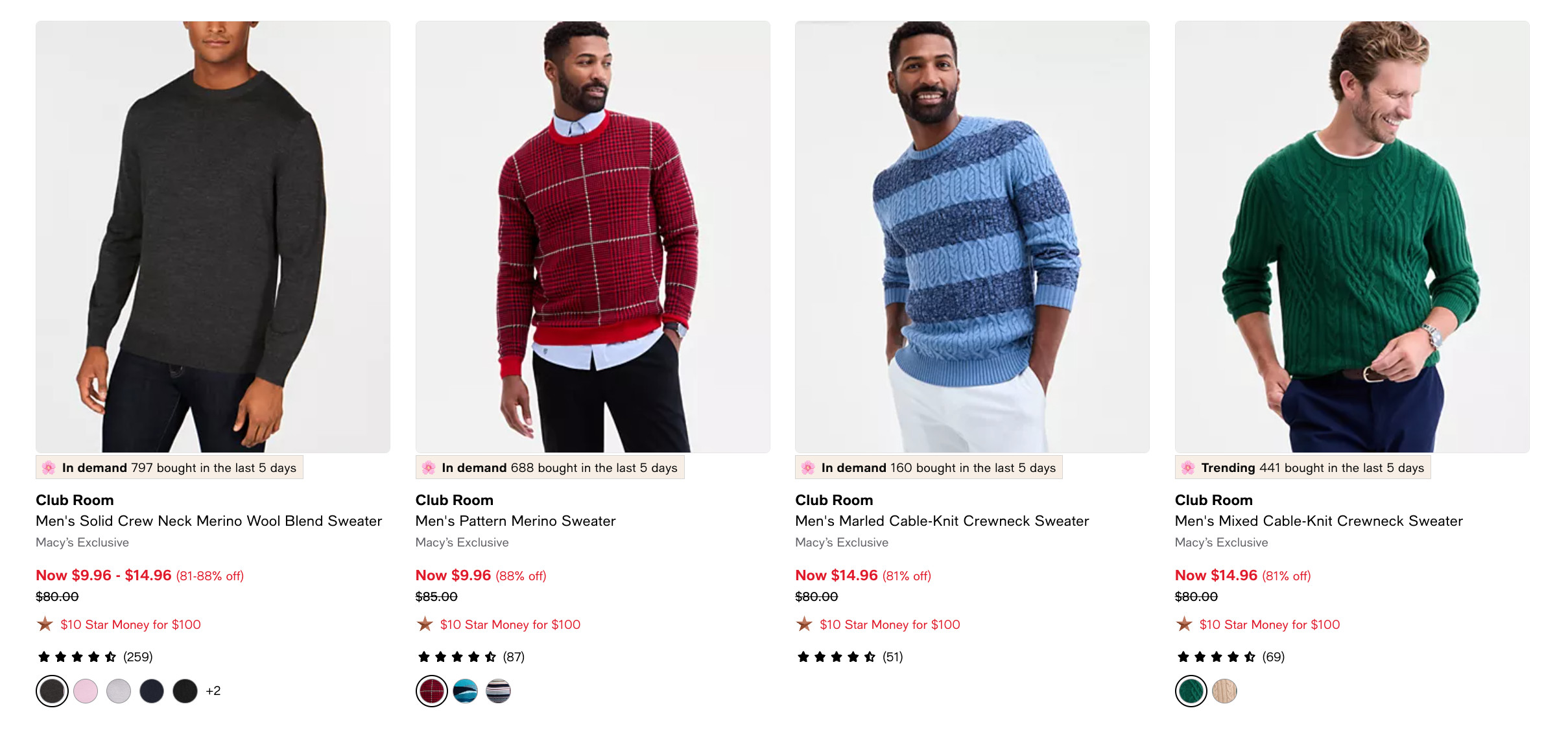 剁手推荐时尚 Macy‘s 梅西百货Club Room 男士毛衣/羊毛/羊绒衫专场抄底价来袭❗️低至个位数!捡漏的最佳时机! By Anan - April 3, 2026 10:44 am PDT 这个品牌的羊绒衫触感柔软,质量和款式都在线。原价接近$200的款式,现在只要几十刀拿下!全部清仓抄底的价格!反季买毛衣最划算了!快给队友和爸爸选起来! 免费注册登录Star Reward会员满$39包邮 点击购买 “文案原创,版权©️剁手,转帖请标明出处,抄袭必究” 剁手Facebook:https://duosho.us/lrp8 广告