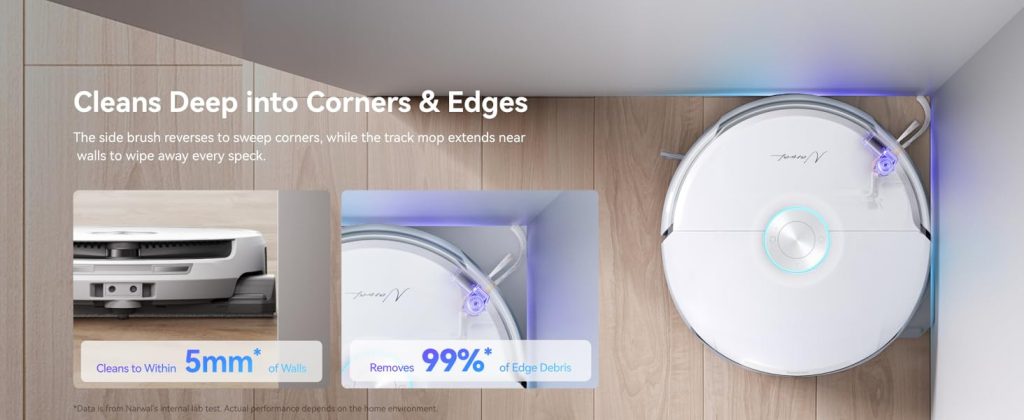 边刷回扫墙角,拖布贴墙5mm清洁,机身可轻松滑入床下/沙发下