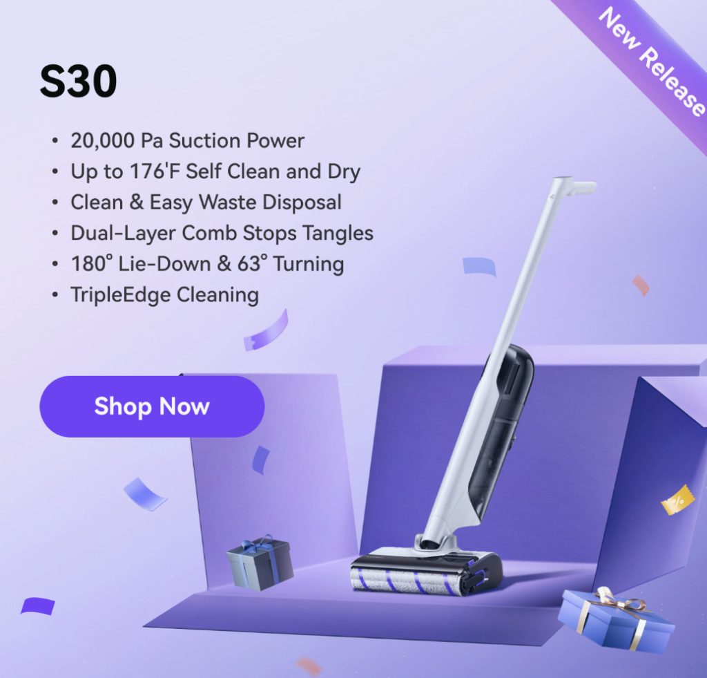 12,000Pa吸力,EdgeSwing贴墙清洁,滚刷防缠绕