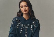 【折后$19.97】Anthropologie 长袖镶饰针织迷你连衣裙