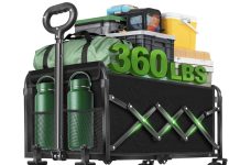 原价$44.99! 拥有高达 360 磅(约 163 公斤)的超强承重能力。无论是帐篷、睡袋、折叠椅、食物、露营必备品,还是沙滩用品(如毛巾、遮阳伞、保温箱)及其他各类装备,它都能轻松装载,让您的户外探险之旅变得轻松自如, 配备了 360 度全方位旋转轮,确保操控既轻松又顺滑。无论是在崎岖的山间小径,还是平坦细腻的沙滩上,它都能如履平地般顺畅滑行。手柄不仅采用伸缩式设计,高度也可自由调节,让推拉搬运变得毫不费力