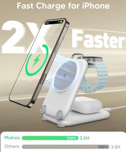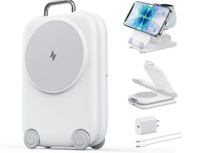 原$39.99!以行李箱造型设计,轻巧便携,适合家用与出差携带。内置强力N52磁吸,自动对准iPhone、iWatch与AirPods,实现三设备同时快速安全充电。稳固磁吸可横竖摆放,收纳方便又省空间。