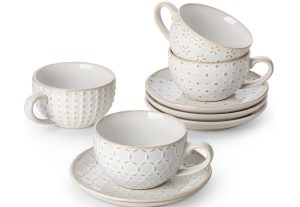 Prime会员专属价!【折后$15.39 Prime包邮】MALACASA浮雕陶瓷咖啡杯碟套装 4杯4碟
