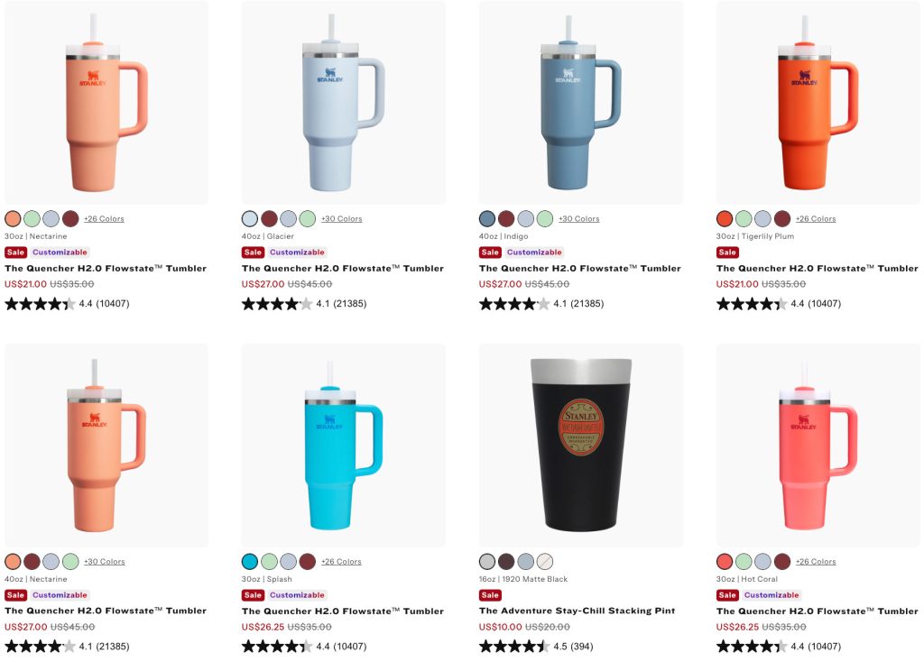 The Quencher H2.0也参加,而且颜色好多,还能刻名字,简直不要太划算!而且颜色都好清爽,超适合夏天!Stanley的水杯真的是火的不要不要,几乎已经人手一个了,不仅质感爆棚,而且出门保冷一整天,环保又时髦,看看哪个小可爱还没有入手!