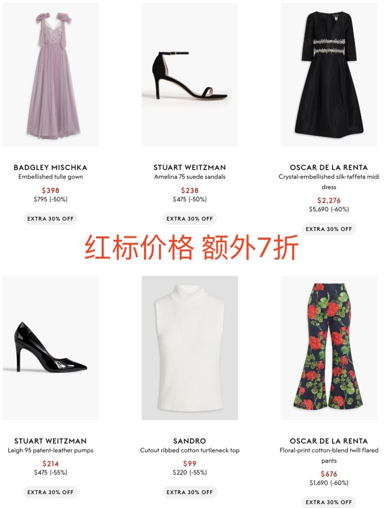 澳洲仙女品牌Zimmermann; 复古经典的Alice+Olivia; 红霸街头的丹麦时尚GANNI; 法式浪漫的SANDRO和MAJE等统统都好价买到手软!